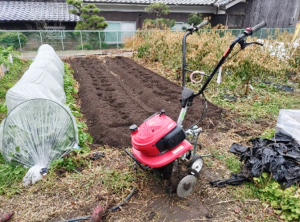 サツマイモ畑を“ホンダ”の“こまめ”で耕運した。 こまめのおかげでクワを持つことが無くなった。 |